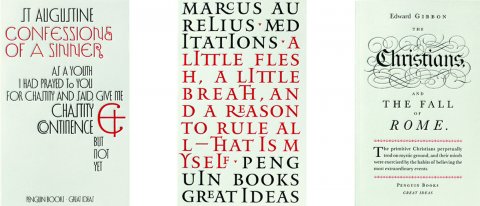We know that history transcribed information and ideas, be they religious, political or cultural, through images and texts (Roberts, 2005). Phil Baines drew inspiration for his experimental typographical approach from history, in particular medieval manuscripts and letterpress (Reputations: Phil Baines, 2008). His work shaped the Penguin's Great Ideas Book series (Memorial Lettering: Phil Baines, 2009).